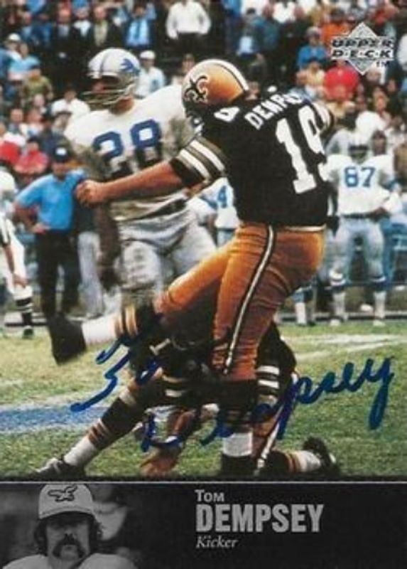 Tom Dempsey's Football cards are available in at least 11 sets. Tom Dempsey's biggest 7-day price movers are 1970 Topps #140 Base, 1971 Kellogg's #54 Base, and 1971 Topps #5 Base.