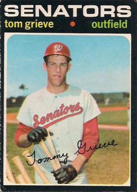 Tom Grieve's Baseball cards are available in at least 17 sets. Tom Grieve's biggest 7-day price movers are 1971 O-Pee-Chee #167 Base, 1971 Topps #167 Base, and 1975 Topps #234 Base.