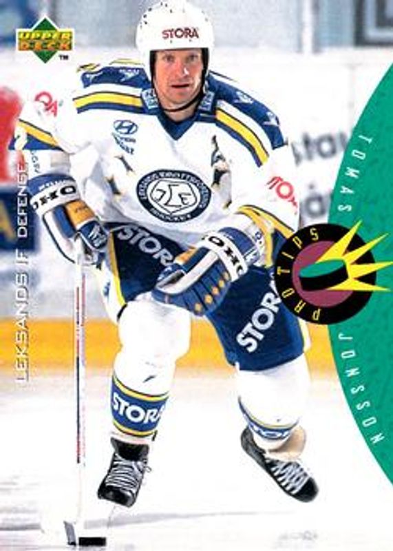 Tomas Jonsson's Hockey cards are available in at least 2 sets. Tomas Jonsson's biggest 7-day price movers are 1995 Upper Deck Swedish Elite #227 Base, 1995 Upper Deck Swedish Elite #95 Base, and 1995 Upper Deck Swedish Elite #255 Base.