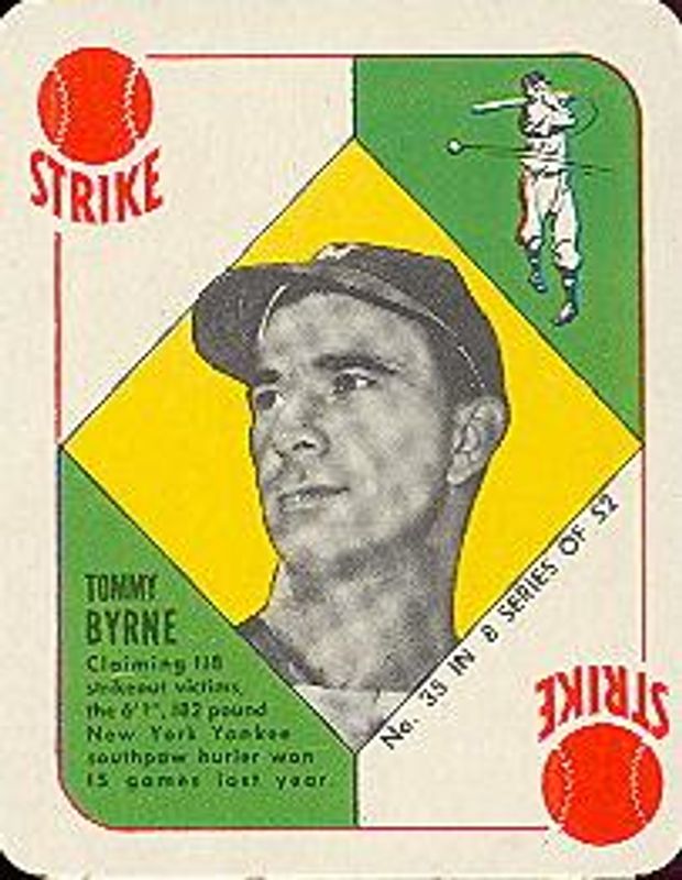 Tommy Byrne's Baseball cards are available in at least 6 sets. Tommy Byrne's biggest 7-day price movers are 1951 Blue Backs #35 Base, 2006 Topps Heritage #ROA-TB Real One Autographs, and 1952 Topps #241 Base.