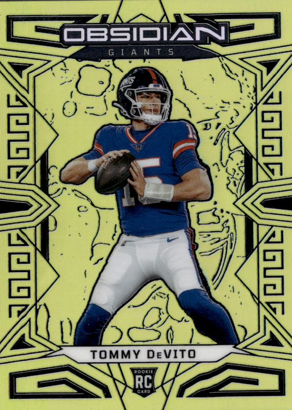 Tommy DeVito's Football cards are available in at least 11 sets. Tommy DeVito's biggest 7-day price movers are 2023 Obsidian #168 Electric Etch Gold Flood /10, 2025 Immaculate #21 Immaculate Numbers Signatures - Platinum /1, and 2025 Immaculate #21 Immaculate Numbers Signatures /99.