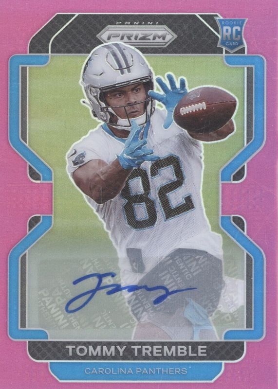 Tommy Tremble's Football cards are available in at least 2 sets. Tommy Tremble's biggest 7-day price movers are 2021 Prizm #415 Rookie Autographs - Pink, 2021 Prizm #415 Rookie Autographs - Camo /25, and 2021 Prizm #415 Rookie Autographs - Green Shimmer /1.