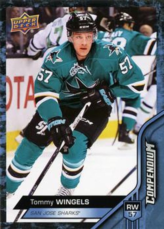 Tommy Wingels' Hockey cards are available in at least 31 sets. Tommy Wingels' biggest 7-day price movers are 2016 Upper Deck Compendium #218 Blue, 2016 Upper Deck Compendium #218 Gold, and 2016 Upper Deck Compendium #218 Printing Plates Cyan /1.