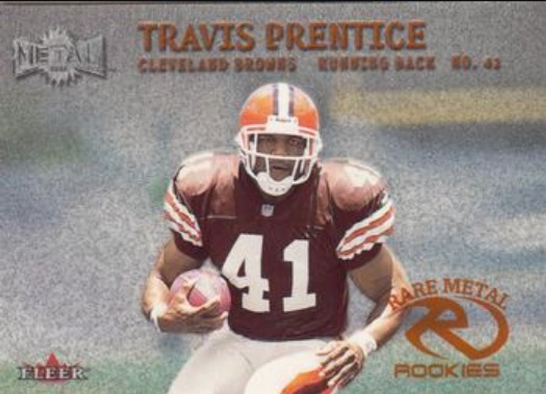 Travis Prentice's Football cards are available in at least 9 sets. Travis Prentice's biggest 7-day price movers are 2000 Metal #278 Base, 2000 Metal #278 Emerald, and 2000 Topps Season Opener #217 Base.