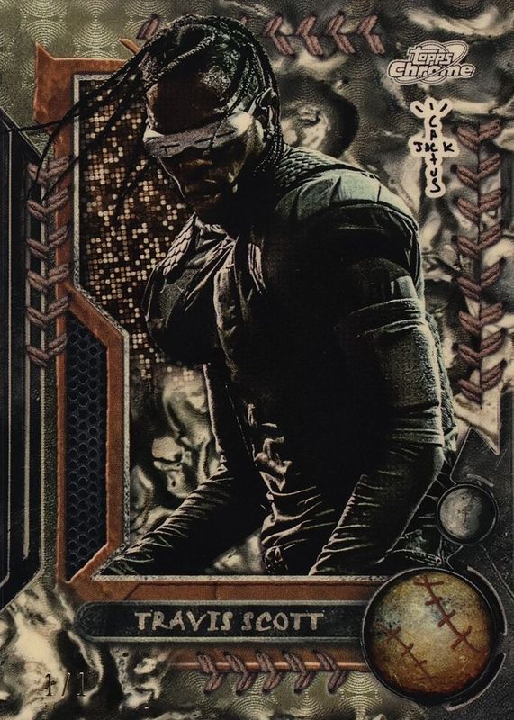 Travis Scott's Pop Culture cards are available in at least 1 sets. Travis Scott's biggest 7-day price movers are 2024 Topps Chrome Cosmic x Cactus Jack #50 Superfractor /1, 2024 Topps Chrome Cosmic x Cactus Jack #50 Red Refractor /5, and 2024 Topps Chrome Cosmic x Cactus Jack #50 Base.