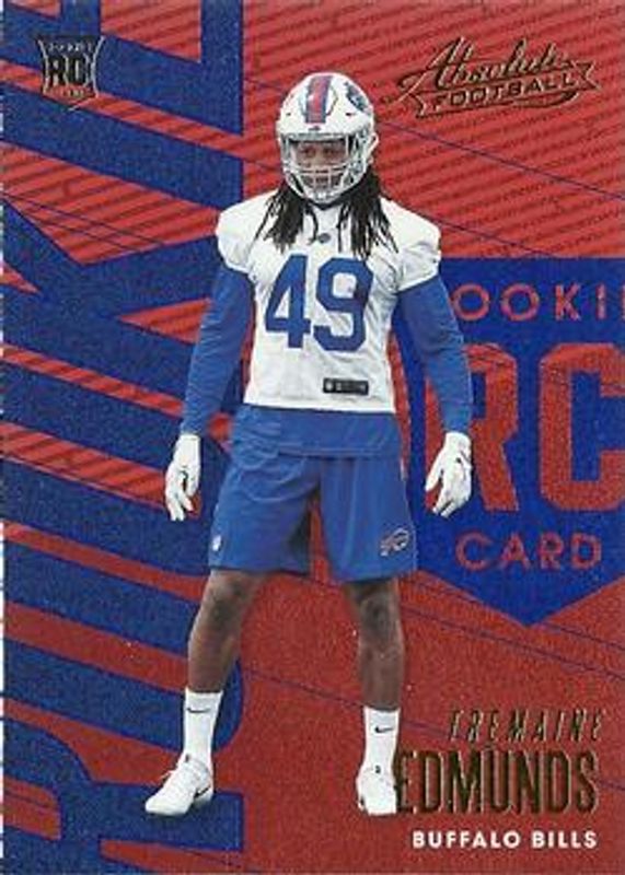 Tremaine Edmunds' Football cards are available in at least 41 sets. Tremaine Edmunds' biggest 7-day price movers are 2018 Absolute #141 Blue Spectrum, 2018 Absolute #141 Green Spectrum /25, and 2018 Absolute #141 Printing Plates Yellow /1.
