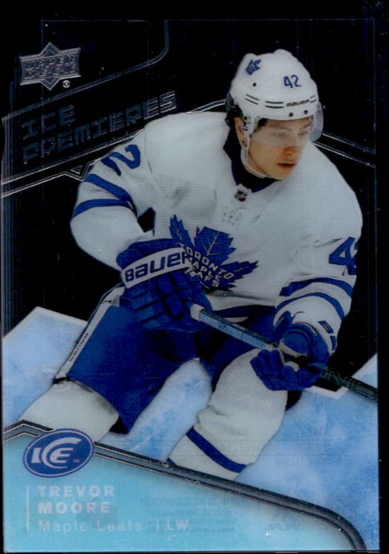Trevor Moore's Hockey cards are available in at least 30 sets. Trevor Moore's biggest 7-day price movers are 2019 Upper Deck Ice #93 Base /499, 2019 Upper Deck Ice #93 Black /1, and 2019 Upper Deck Ice #IP-TM Ice Premieres Autographed Patches /10.