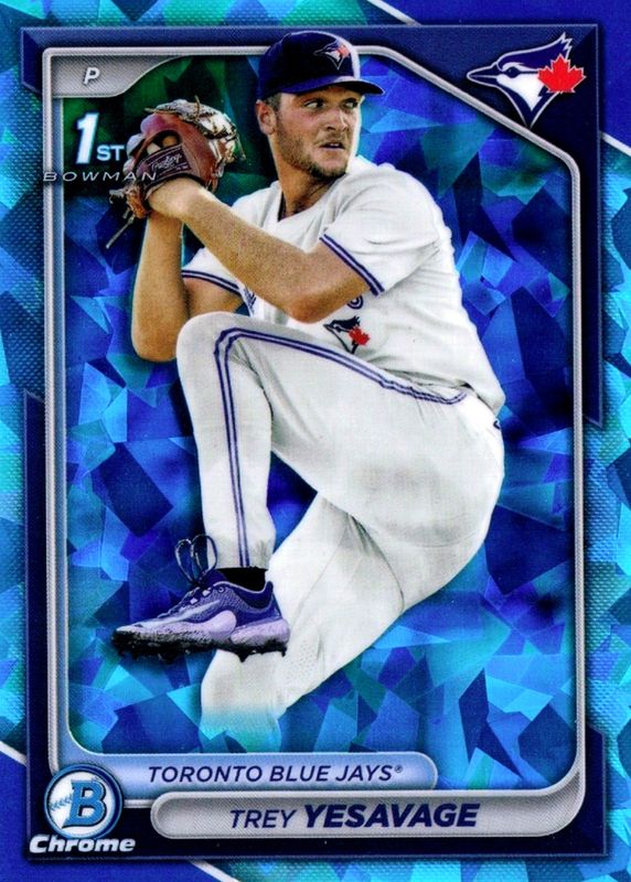 Trey Yesavage's Baseball cards are available in at least 9 sets. Trey Yesavage's biggest 7-day price movers are 2024 Bowman Draft #CPA-TY Chrome DP Auto - Refractor /499 (1st), 2024 Bowman Draft #BDC-92 Chrome - Refractor (1st), and 2024 Bowman Draft Sapphire Edition #BDC-92 Chrome (1st).