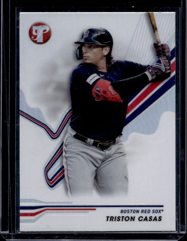 Triston Casas' Baseball cards are available in at least 62 sets. Triston Casas' biggest 7-day price movers are 2024 Topps Pristine #31 Refractor, 2024 Topps Pristine #FRA-TC Frozen Ropes Autographs - Red Refractor /5, and 2024 Topps Pristine #FRA-TC Frozen Ropes Autographs - Gold Refractor /50.
