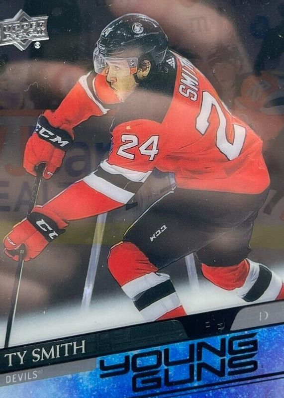 Ty Smith's Hockey cards are available in at least 35 sets. Ty Smith's biggest 7-day price movers are 2020 Upper Deck #456 Young Guns - Clear Cut, 2020 Upper Deck #456 Young Guns Base, and 2022 Topps Chrome NHL Sticker Collection #302 Red Refractor /5.