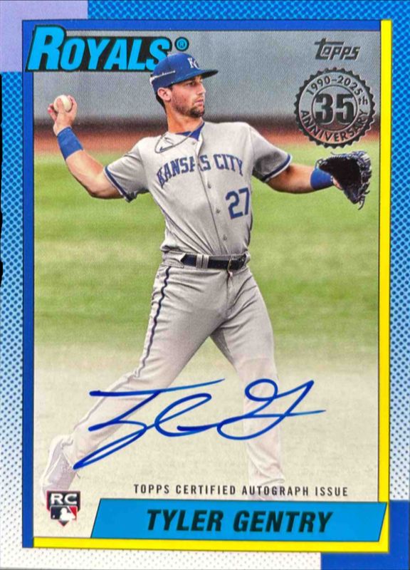 Tyler Gentry's Baseball cards are available in at least 11 sets. Tyler Gentry's biggest 7-day price movers are 2025 Topps #6 Golden Mirror Image Variation /(SSP), 2025 Topps Heritage #109 Base, and 2025 Topps Heritage #109 Dark Blue Border.
