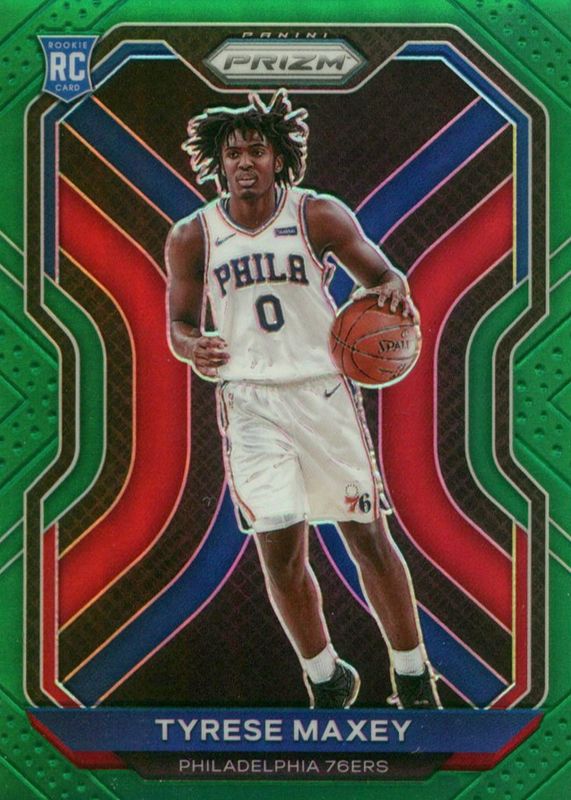 Tyrese Maxey's Basketball cards are available in at least 135 sets. Tyrese Maxey's biggest 7-day price movers are 2020 Prizm Draft Picks #54 Silver (Secondary Photo), 2020 Mosaic #203 Reactive Orange, and 2020 Hoops #207 Purple.
