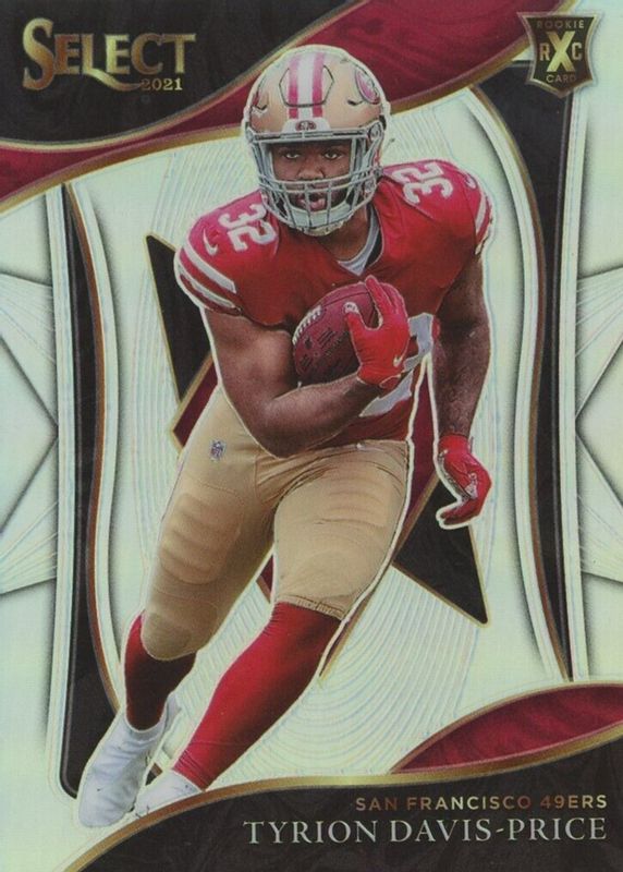 Tyrion Davis-Price's Football cards are available in at least 5 sets. Tyrion Davis-Price's biggest 7-day price movers are 2021 Select #409 XRC Prizm, 2022 Contenders #139 Rookie Ticket Auto - Gold /10, and 2022 Contenders #139 Rookie Ticket Auto.