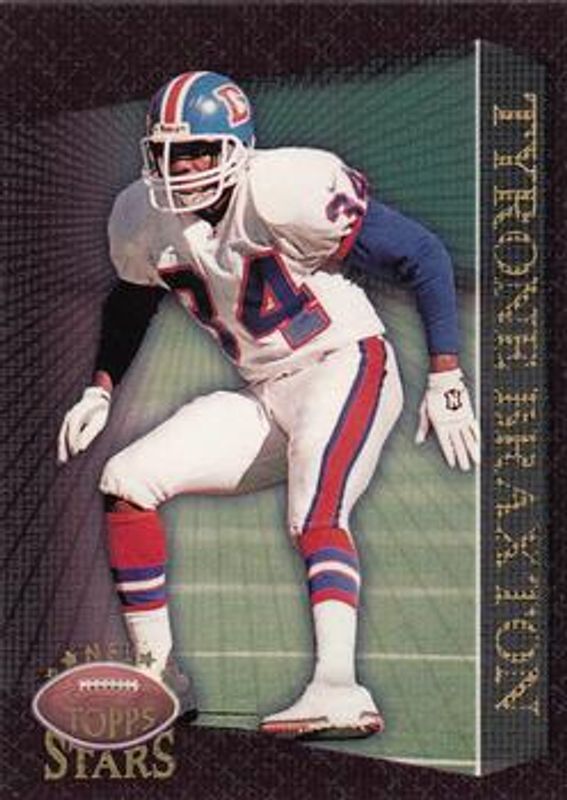 Tyrone Braxton's Football cards are available in at least 4 sets. Tyrone Braxton's biggest 7-day price movers are 1997 Topps Stars #14 Base, 1997 Topps Stars #14 Always Mint, and 1997 Score Hobby Reserve #216 Base.