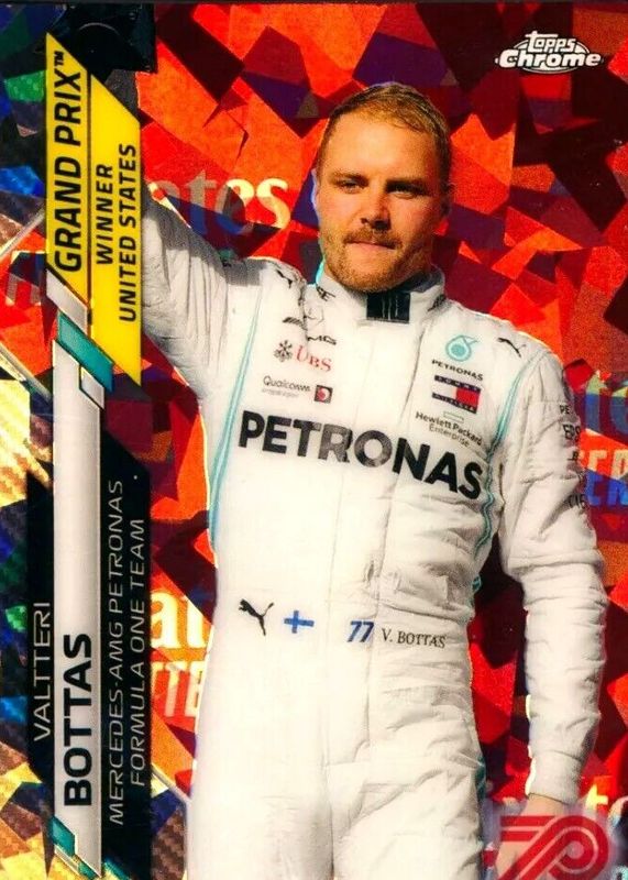 Valtteri Bottas' Racing cards are available in at least 11 sets. Valtteri Bottas' biggest 7-day price movers are 2021 Topps Chrome Formula 1 #RL-2 Redliners, 2020 Topps Chrome Formula 1 Sapphire Edition #151 Grand Prix Winners - 70th Anniversary /70 (United States), and 2021 Topps Chrome Formula 1 Sapphire Edition #2 Base.
