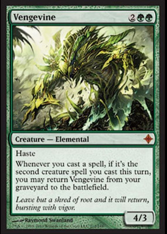 Vengevine's Magic: The Gathering cards are available in at least 1 sets. Vengevine's biggest 7-day price movers are 2010 Rise of the Eldrazi #212 Foil.