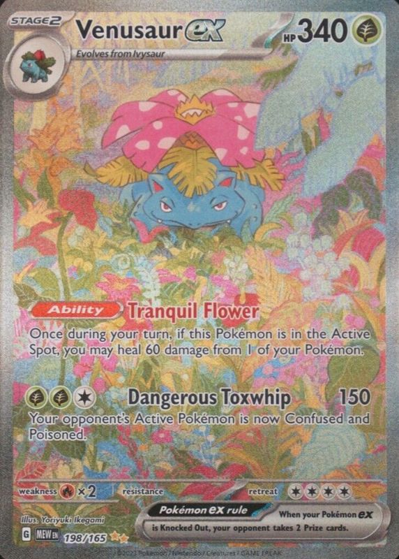 Venusaur ex's Pokemon cards are available in at least 8 sets. Venusaur ex's biggest 7-day price movers are 2024 Scarlet & Violet: Stellar Crown #001/142 Double Rare, 2023 Japanese Scarlet & Violet: 151 #184/165 Super Rare, and 2023 Scarlet & Violet: 151 #003/165 Double Rare.