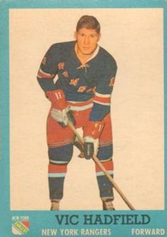 Vic Hadfield's Hockey cards are available in at least 22 sets. Vic Hadfield's biggest 7-day price movers are 1962 Topps #60 Base, 1964 Topps #62 Base, and 1965 Topps #27 Base.