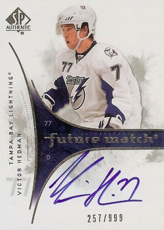 Victor Hedman's Hockey cards are available in at least 178 sets. Victor Hedman's biggest 7-day price movers are 2009 SP Authentic #202 Future Watch Auto /999, 2009 Upper Deck #202 Young Guns Base, and 2020 Upper Deck Artifacts #17 Base /999.