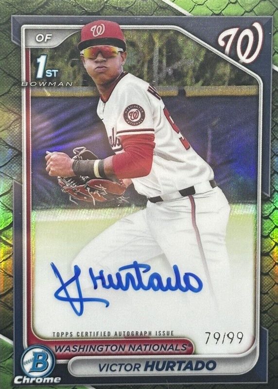 Victor Hurtado's Baseball cards are available in at least 6 sets. Victor Hurtado's biggest 7-day price movers are 2024 Bowman Chrome #CPA-VH Prospect Auto - Reptilian Green Refractor /99 (1st), 2025 Prizm #SS-VH Sensational Signatures - Red Pulsar /99, and 2025 Prizm #SS-VH Sensational Signatures - Mojo /25.