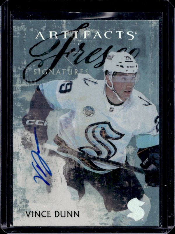 Vince Dunn's Hockey cards are available in at least 28 sets. Vince Dunn's biggest 7-day price movers are 2014 In The Game Heroes & Prospects #PA-VD1 Prospect Autographs - Printing Plates Black /1, 2014 In The Game Heroes & Prospects #92 Prospect Autographs - Gold /10, and 2014 In The Game Heroes & Prospects #PA-VD1 Prospect Autographs - Printing Plates Cyan /1.