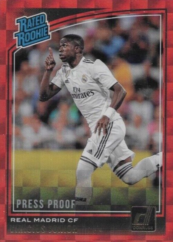 Vinicius Jr.'s Soccer cards are available in at least 111 sets. Vinicius Jr.'s biggest 7-day price movers are 2018 Donruss #177 Optic, 2018 Donruss #177 Press Proof Red, and 2024 Prizm Copa America #5 Manga /(SSP).