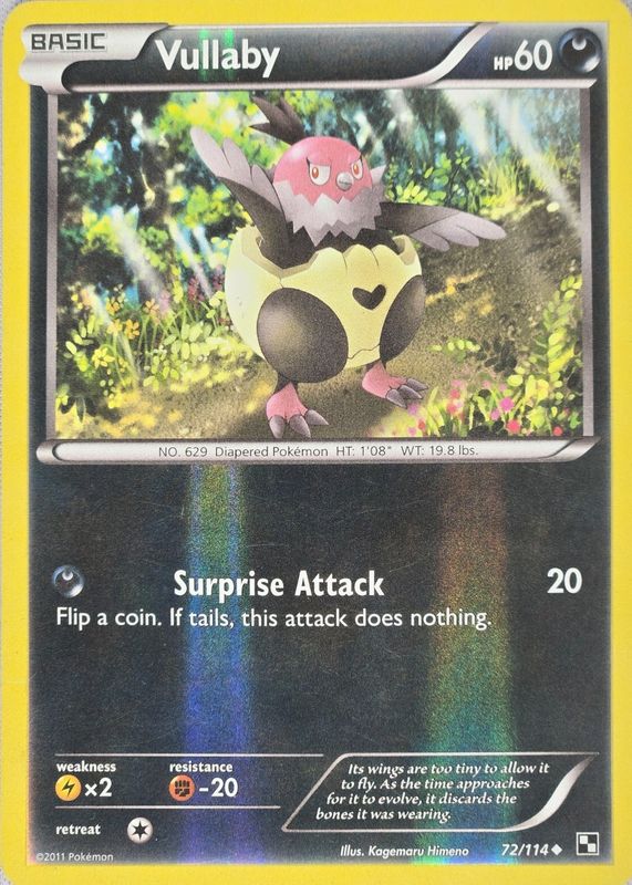 Vullaby's Pokemon cards are available in at least 10 sets. Vullaby's biggest 7-day price movers are 2025 Scarlet & Violet: White Flare #063/086 Master Ball Reverse Holo, 2026 Mega Evolution: Ascended Heroes #138/217 Dusk Ball Reverse Holo, and 2011 Black & White #072/114 Reverse Holo.