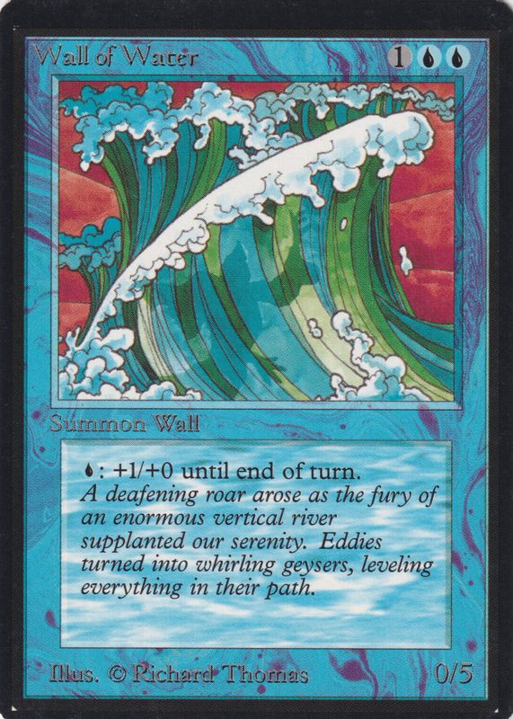 Wall of Water's Magic: The Gathering cards are available in at least 3 sets. Wall of Water's biggest 7-day price movers are 1993 Beta Edition Base, 1993 Alpha Edition Base, and 1993 Unlimited Edition Base.