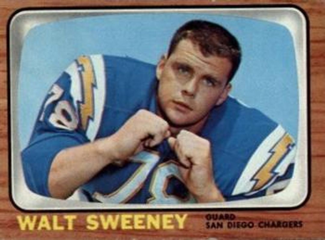 Walt Sweeney's Football cards are available in at least 7 sets. Walt Sweeney's biggest 7-day price movers are 1966 Topps #126 Base, 1965 Topps #173 Base, and 1970 Topps #173 Base.