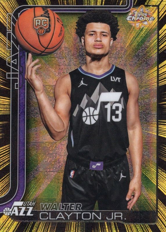 Walter Clayton Jr.'s Basketball cards are available in at least 9 sets. Walter Clayton Jr.'s biggest 7-day price movers are 2025 Topps Finest #F-18 First - Refractor, 2025 Topps Chrome #268 Base, and 2025 Topps #218 Diamante Foil.