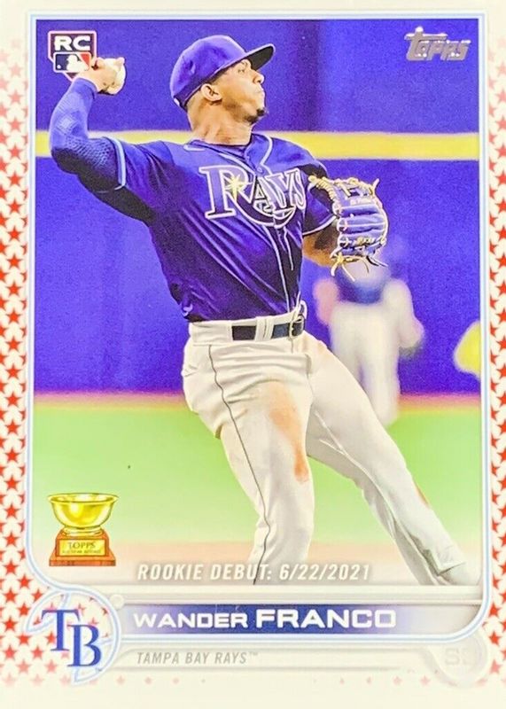 Wander Franco's Baseball cards are available in at least 81 sets. Wander Franco's biggest 7-day price movers are 2022 Topps Chrome #35 Prism Refractor, 2019 Bowman #BCP-100 Chrome Prospects (1st), and 2022 Topps Update #US42 Rookie Debut - Independence Day /76.