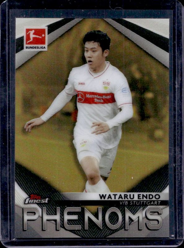 The biggest 30-day change Wataru Endo cards are 2020 Topps Finest Bundesliga #FPH-WE Finest Phenoms - Gold /50, 2020 Topps Chrome Bundesliga #94 Gold Refractor /50, and 2020 Topps Chrome Bundesliga #94 Prism Refractor /199.