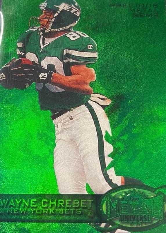 Wayne Chrebet's Football cards are available in at least 45 sets. Wayne Chrebet's biggest 7-day price movers are 1997 Metal Universe #15 Precious Metal Gems Green /15, 1997 Metal Universe #15 Precious Metal Gems Red /135, and 1998 SPx Finite #60 Base /7200.