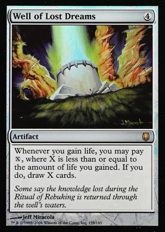 Well of Lost Dreams' Magic: The Gathering cards are available in at least 1 sets. Well of Lost Dreams' biggest 7-day price movers are 2004 Darksteel #159 Foil, and 2004 Darksteel #159 Base.