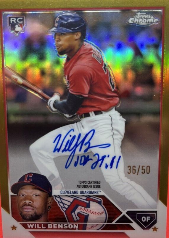 Will Benson's Baseball cards are available in at least 10 sets. Will Benson's biggest 7-day price movers are 2023 Topps Chrome #RA-WB Rookie Autographs - Gold Refractor /50, 2023 Topps Chrome Sapphire Edition #339 Orange /25, and 2023 Topps Update #88BAU-WB 1988 Topps Autographs.