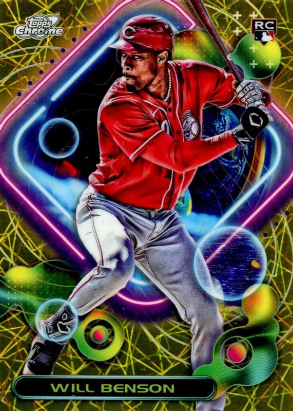 Will Benson's Baseball cards are available in at least 9 sets. Will Benson's biggest 7-day price movers are 2023 Topps Chrome Cosmic #200 Gold Interstellar Refractor /50, 2023 Topps Update #88BAU-WB 1988 Topps Autographs - Red /25, and 2023 Topps Chrome Sapphire Edition #339 Orange /25.