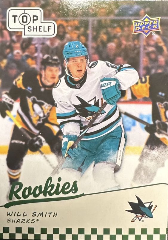 The biggest 30-day change Will Smith cards are 2025 Upper Deck NSCC Wrapper Redemption #TS-4 Top Shelf NHL Rookies, 2025 Upper Deck NSCC Wrapper Redemption #TSA-WS Top Shelf NHL Rookies Autographs /60, and 2019 Panini Black Friday #RC14 Rookies & Prospects Future Frames /99.