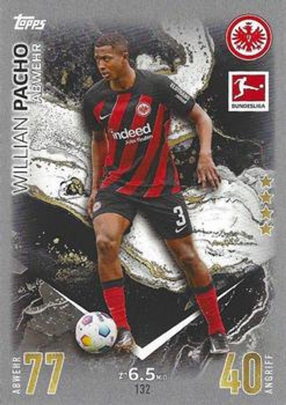 The biggest 30-day change Willian Pacho cards are 2023 Topps Match Attax Bundesliga #132 Base, 2023 Donruss #6 The Rookies - Gold /10, and 2023 Donruss #6 The Rookies - Black /1.