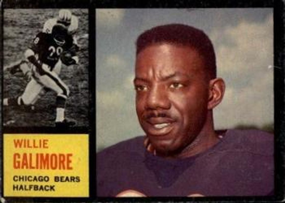 Willie Galimore's Football cards are available in at least 4 sets. Willie Galimore's biggest 7-day price movers are 1962 Topps #14 Base, 1962 Topps #34 Bucks, and 1960 Topps #14 Base.