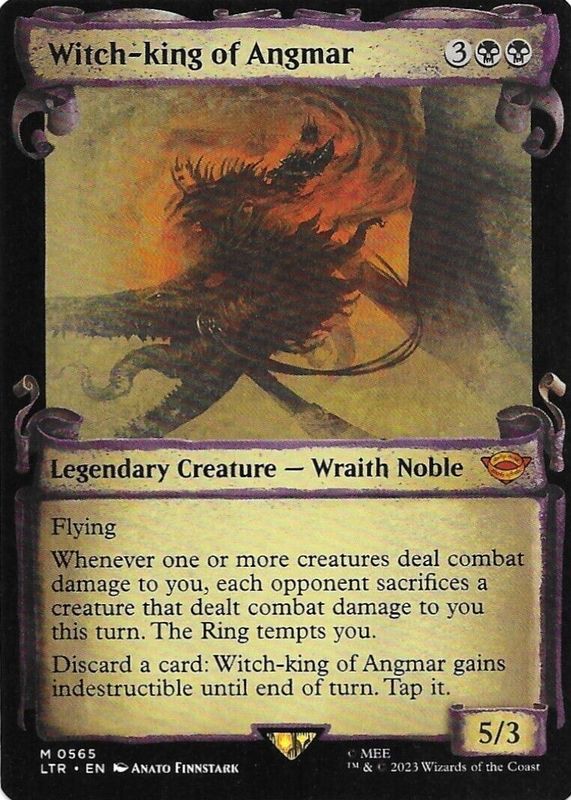 Witch-King of Angmar's Magic: The Gathering cards are available in at least 1 sets. Witch-King of Angmar's biggest 7-day price movers are 2023 The Lord of the Rings: Tales of Middle-Earth #565 Base Showcase, 2023 The Lord of the Rings: Tales of Middle-Earth #114 Base, and 2023 The Lord of the Rings: Tales of Middle-Earth #803 Surge Foil Showcase.