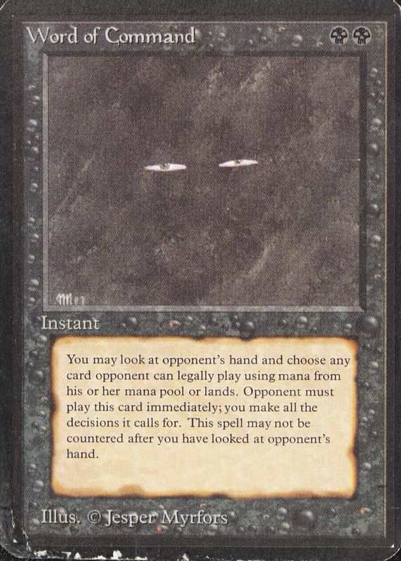 Word of Command's Magic: The Gathering cards are available in at least 1 sets. Word of Command's biggest 7-day price movers are 1993 Alpha Edition Base.