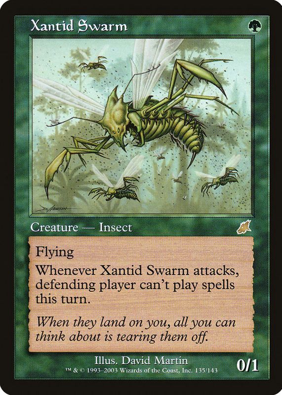 Xantid Swarm's Magic: The Gathering cards are available in at least 1 sets. Xantid Swarm's biggest 7-day price movers are 2003 Scourge #135 Foil, and 2003 Scourge #135 Base.
