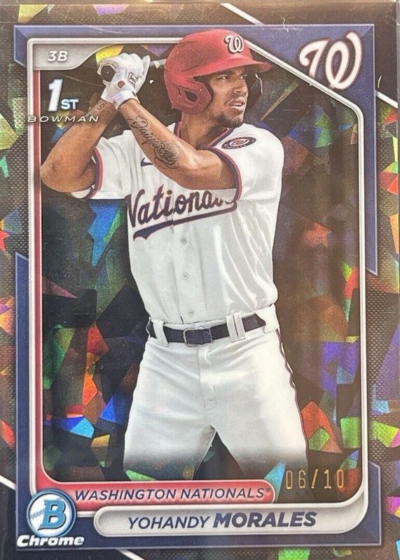 The biggest 30-day change Yohandy Morales cards are 2024 Bowman Mega Box #BCP-52 Chrome Prospects (1st), 2024 Bowman #CPA-YM Chrome Prospect Auto - Refractor /499 (1st), and 2024 Bowman Sapphire Edition #BCP-52 Base (1st).