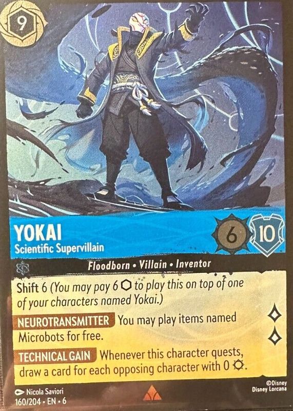 Yokai - Scientific Supervillain's Disney Lorcana cards are available in at least 1 sets. Yokai - Scientific Supervillain's biggest 7-day price movers are 2024 Azurite Sea #160/204 Cold Foil, and 2024 Azurite Sea #160/204 Base.
