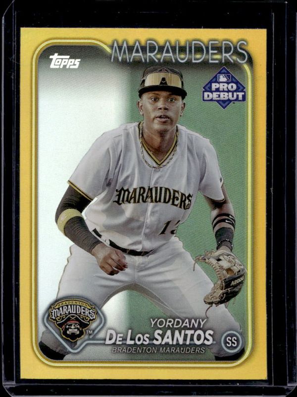 Yordany De Los Santos' Baseball cards are available in at least 7 sets. Yordany De Los Santos' biggest 7-day price movers are 2024 Topps Pro Debut #PD-135 Gold Foil /50, 2024 Topps Pro Debut #PD-135 Orange Foil /25, and 2024 Topps Pro Debut #PD-135 Base Autographs.