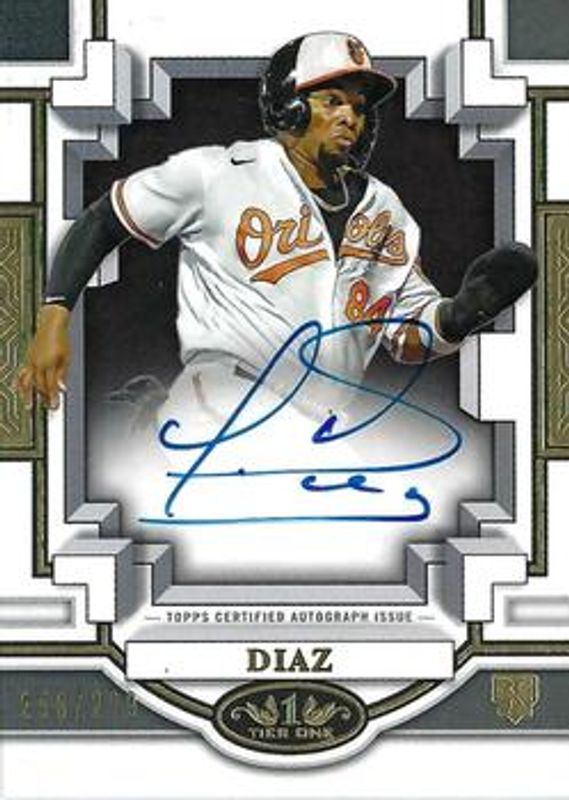 Yusniel Diaz's Baseball cards are available in at least 3 sets. Yusniel Diaz's biggest 7-day price movers are 2023 Topps Tier One #BOA-YD Break Out Autographs /299, 2023 Topps Tier One #BOA-YD Break Out Autographs - Silver Ink /10, and 2023 Topps Tier One #BOA-YD Break Out Autographs - Bronze Ink /25.