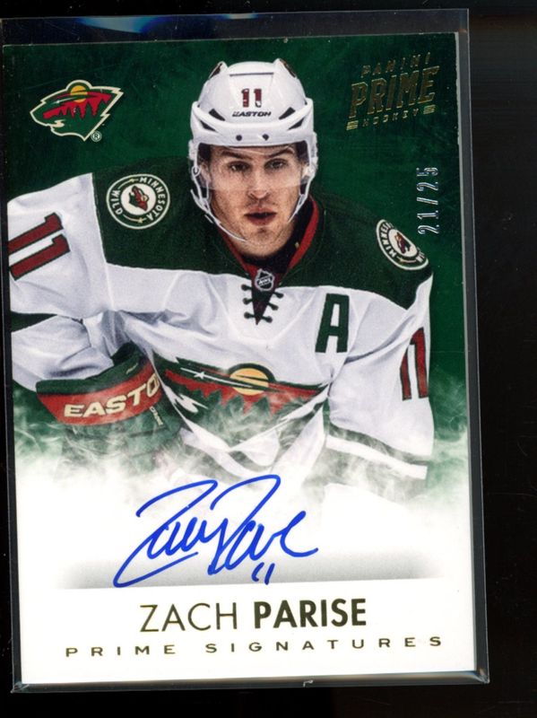 Zach Parise's Hockey cards are available in at least 73 sets. Zach Parise's biggest 7-day price movers are 2013 Prime #S-ZP Prime Signatures - Gold /25, 2013 Prime #45 Holo Gold /25, and 2013 Prime #45 Holo Silver /50.