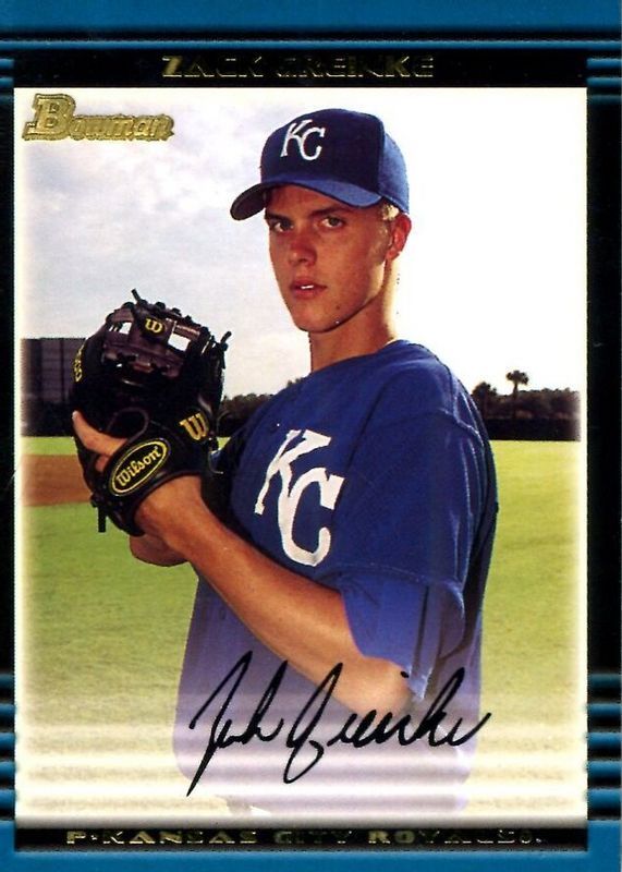 Zack Greinke's Baseball cards are available in at least 62 sets. Zack Greinke's biggest 7-day price movers are 2002 Bowman Draft Picks & Prospects #BDP-6 Base, 2002 Bowman Draft Picks & Prospects #BDP-6 Gold, and 2002 Bowman Draft Picks & Prospects #BDP-6 Chrome - Gold Refractor /50.