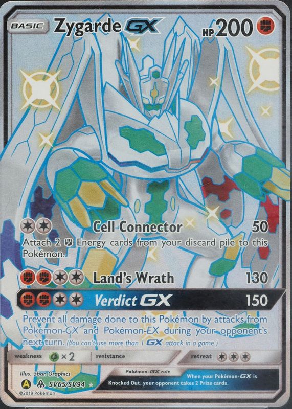 Zygarde GX's Pokemon cards are available in at least 4 sets. Zygarde GX's biggest 7-day price movers are 2019 Sun & Moon: Hidden Fates #SV65/SV94 Shiny Rare (Full Art), 2018 Sun & Moon: Forbidden Light #123/131 Holo (Full Art), and 2018 Sun & Moon: Forbidden Light #136/131 Holo (Secret).